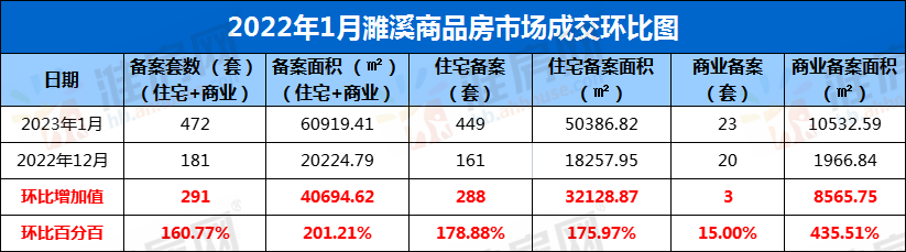 二、2023年1月濉溪县楼市商品房市场成交环比