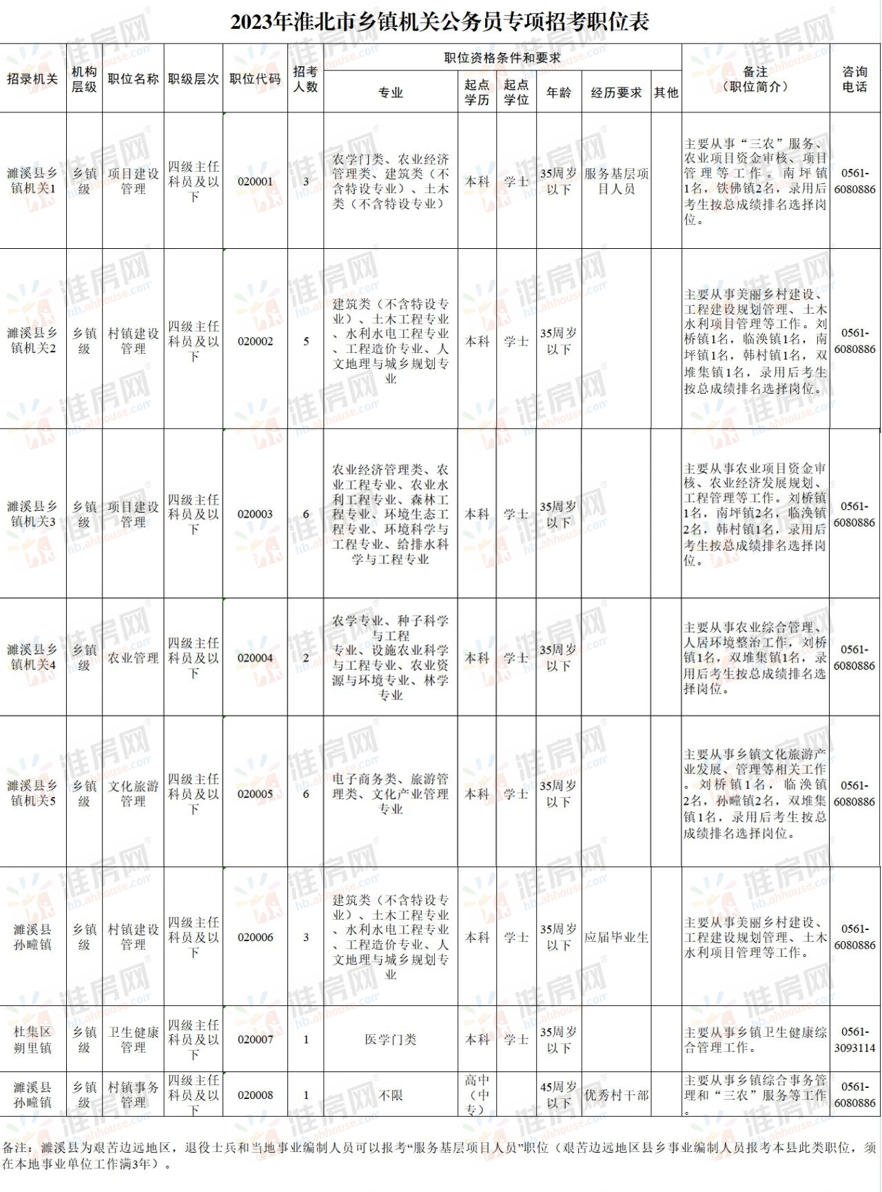 (一)报考职位查询。各招录机关的具体职位、资格条件等信息详见各市2023年乡镇机关公务员专项招考职位表,报考者可通过相关网站查询招考职位信息。招考职位的专业、学历、学位等有关资格条件问题,由各市、省直管县公务员主管部门和招录机关负责解释(咨询电话见职位表)。有关报考政策、报名网络技术和考务安排等事宜,请参阅《报考指南》。